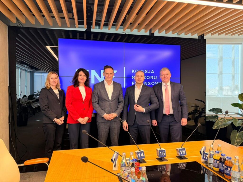 Голова Національної комісії з цінних паперів та фондового ринку Олексій Семенюк та член Комісії Арсен Ільін під час робочої поїздки до Польщі провели зустріч із представниками Комісії фінансового нагляду Польщі (KNF).